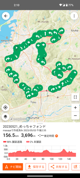 今回のセルフチャレンジグランフォンドでは、「RidewithGPS」のデータを公開しております。