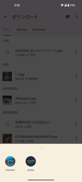 クリックすると、どのアプリで開くか確認があるので、Brytonアプリ「Active」を選択します。