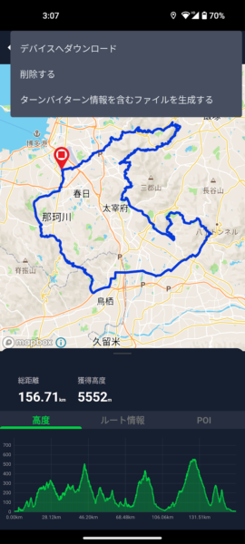 4:アプリでコースを開きサイコンへ転送