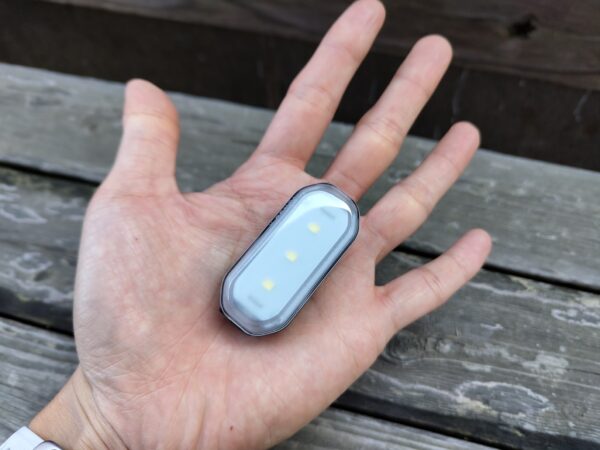 クリップタイプになっているフロントライト、バッグや腰まわりにも取り付けやすい設計になっている。