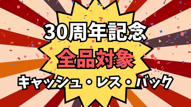 30周年記念 第2弾:全品対象「キャッシュ・レス・バック」還元祭