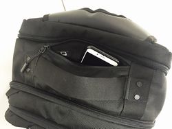 トップのスマホ専用ポケットにも、同様に機器を傷つけないよう起毛素材が採用されています。