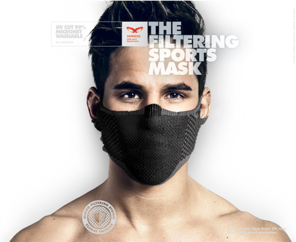 スギ・ ヒノキ花粉等空気中の有害物質を除去する新技術のマイクロネット フィルター構造のスポーツマスクです