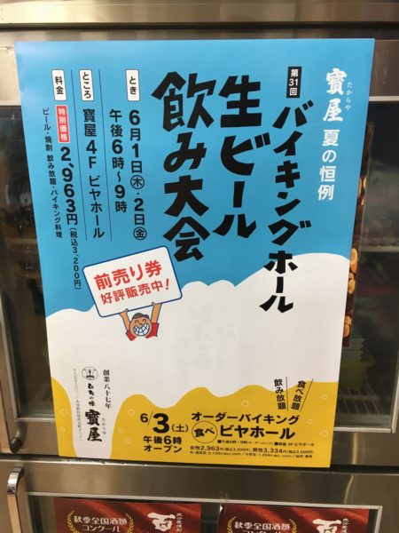 来週は、「バイキング生ビール飲み大会」が開催されるとのこと。