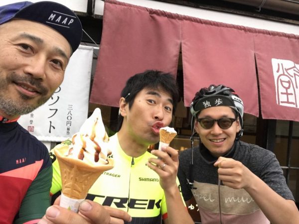 ゴール後は、黒糖上げ饅頭今泉堂の黒蜜ソフトで補給して露天風呂で汗を流してきました。