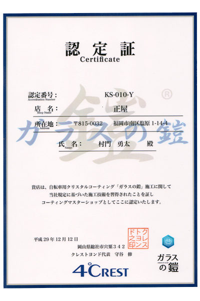 ・ガラスの鎧クリスタルコーティング:8,000円(税抜)※バイクメンバー価格