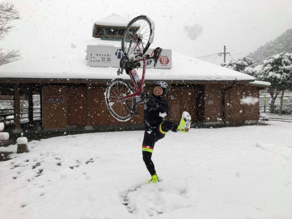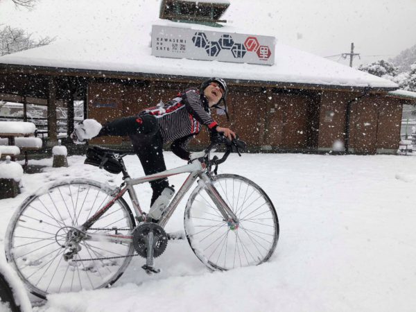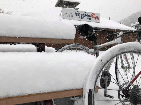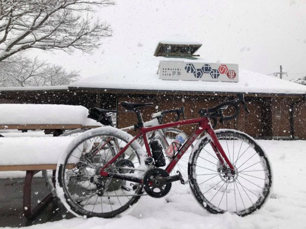 出発して数キロは雪が舞う程度でまだいつもの雪がチラつくライドでしたが、