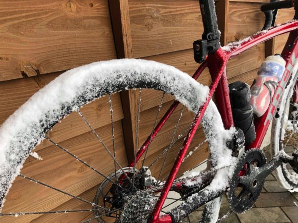 ライトにGARMIN、そしてタイヤにも雪がみっちり凍りついてます(笑)