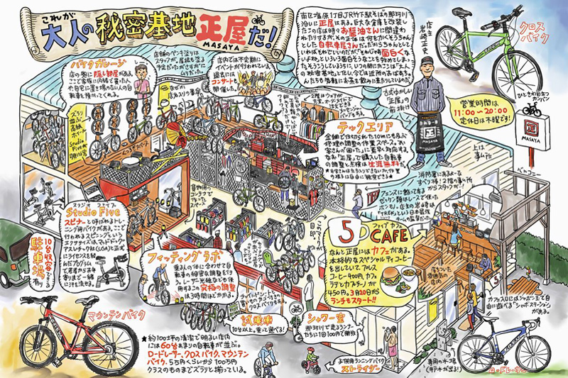 大人の秘密基地をコンセプトに、約100坪の倉庫を改築しました。 ロード・マウンテンバイク・クロスバイク&パーツ・アクセサリーがずらり。 お客様の大事な愛車をお預かりするバイクガレージを併設するなど、 自転車店の新しいカタチを提案しています。